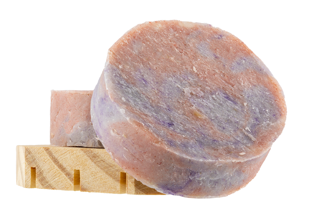 Ingredients: Soap (palm oil, coconut oil, soybean oil, water, sodium hydroxide),Milk, Lavandula angustifolia (Lavender) Oil, Mentha arvensis (Peppermint) Oil, Violet Ultramarine, Iron Oxides (Red)