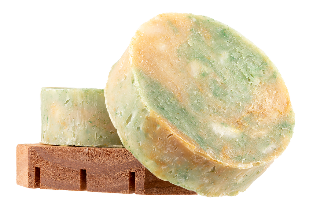 Ingredients: Soap (palm oil, coconut oil, soybean oil, water, sodium hydroxide), Milk, Cymbopogon flexuosus (Lemongrass) Oil, Chromium Oxide Green, Brazilian Yellow Clay (Kaolin, Montmorillonite, Mica)