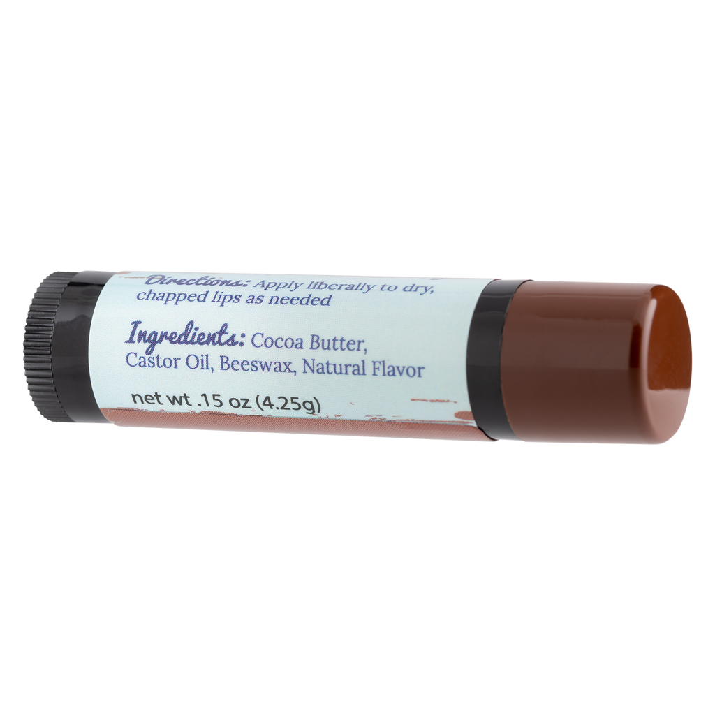 Ingredients: Theobroma Cacao (Cocoa) Seed Butter, Ricinus Communis (Castor) Seed Oil, Beeswax, Natural Flavor